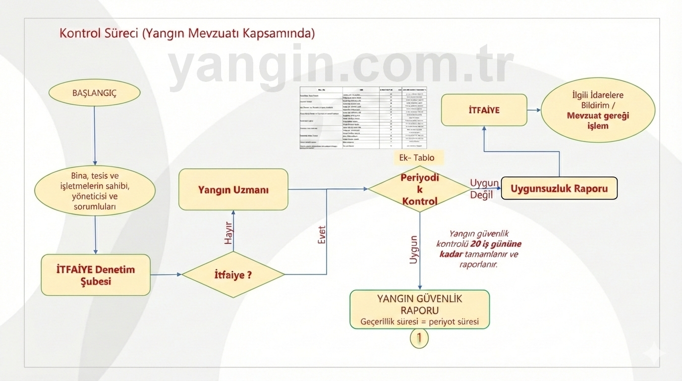 • Sıklık: Yılda en az iki kez (6 ayda bir) yetkili idareler (itfaiye) tarafından denetlenmelidir.